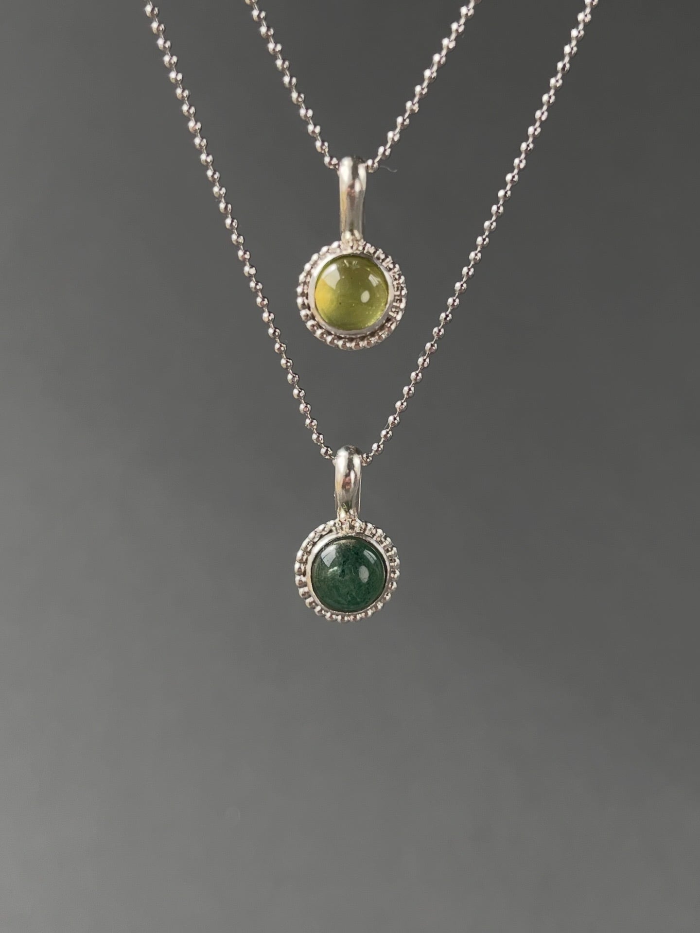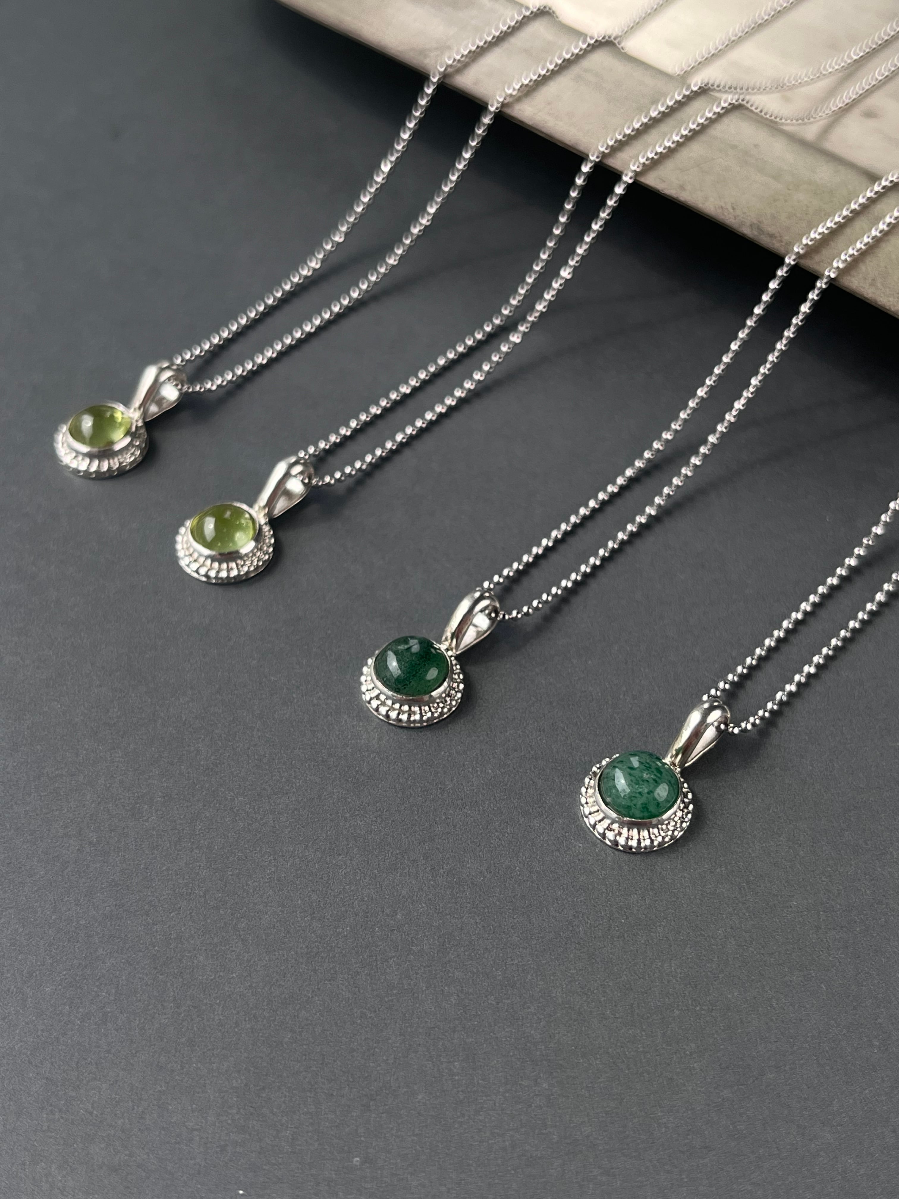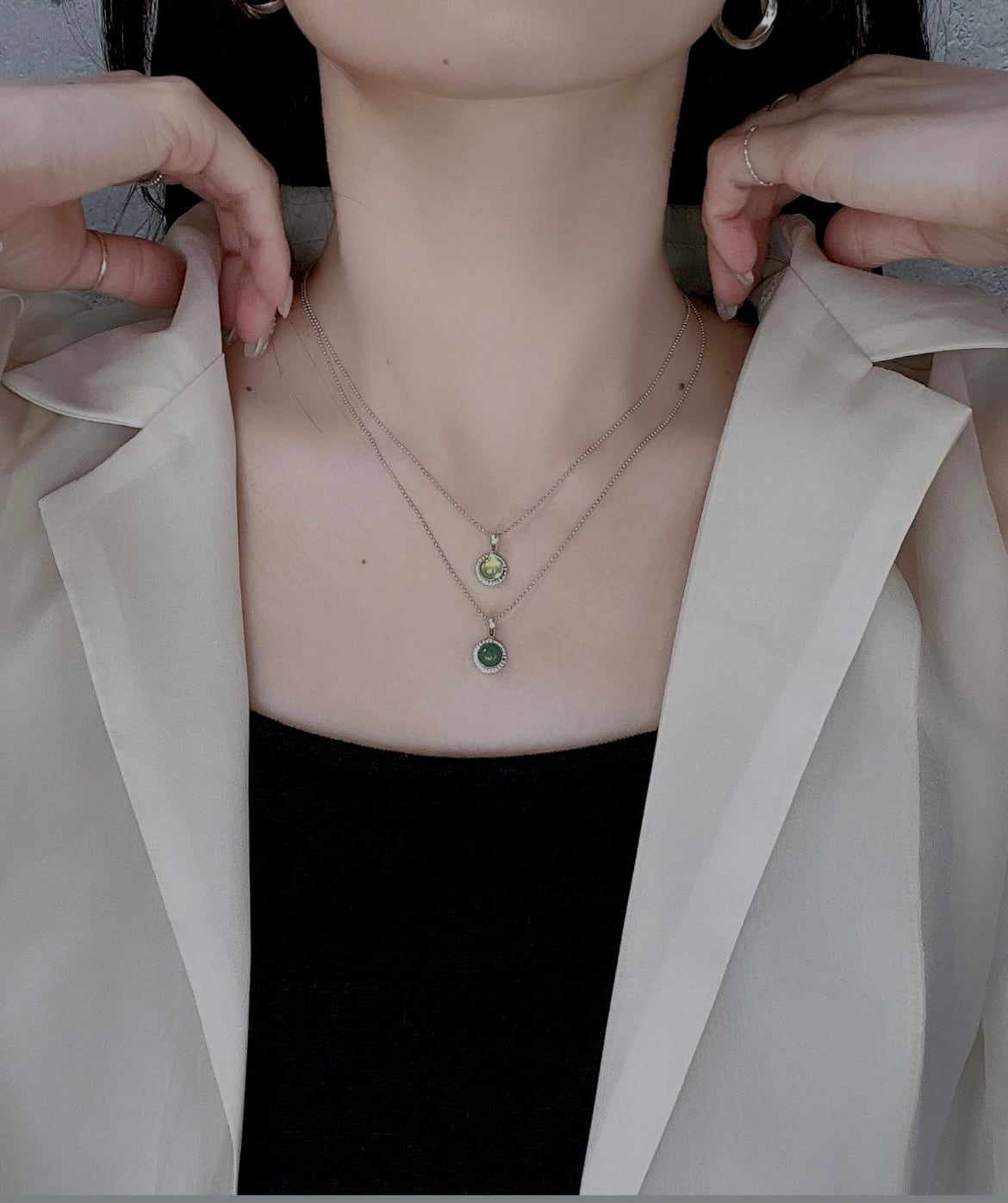 目にやさしいグリーンは、身につけるだけでどこかリラックスした印象に。