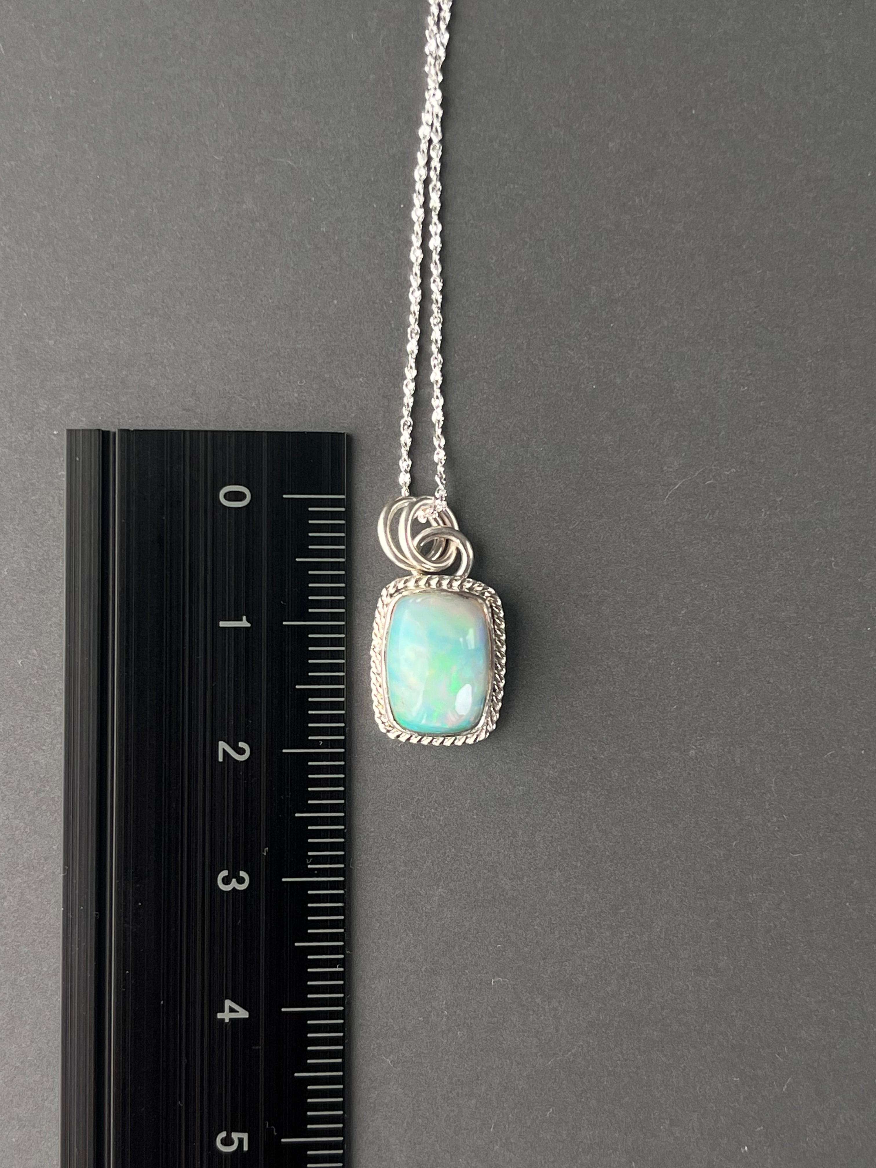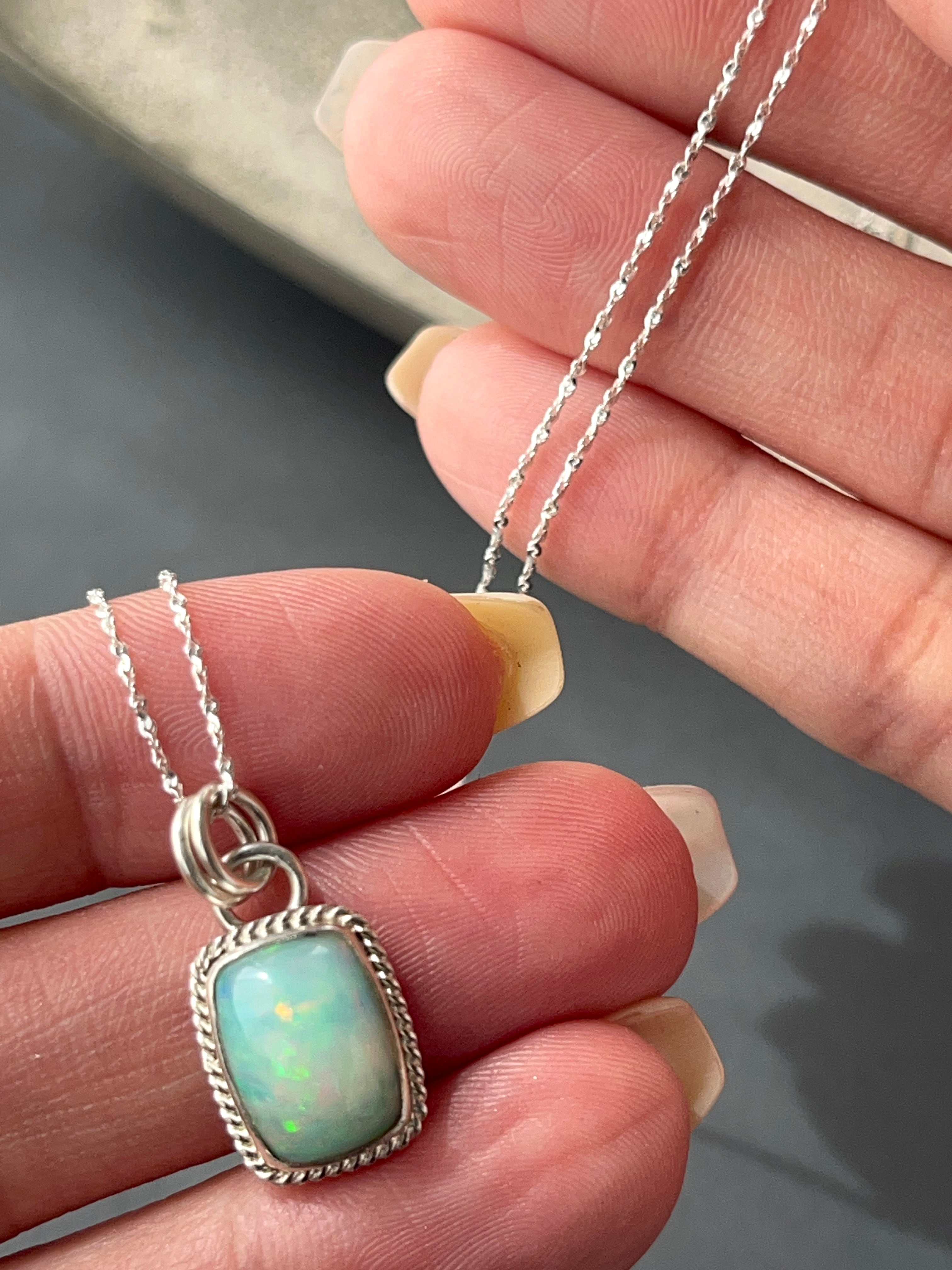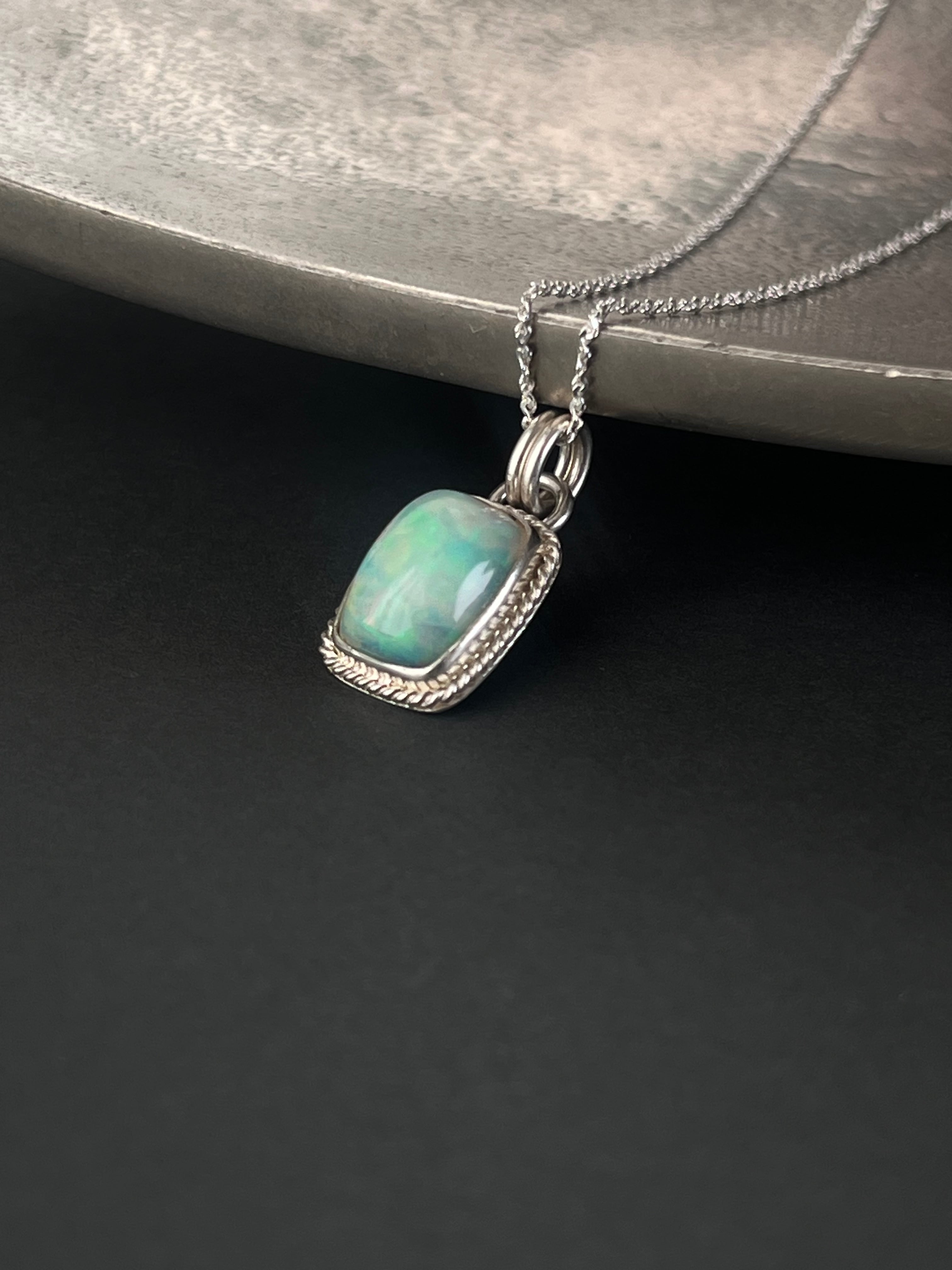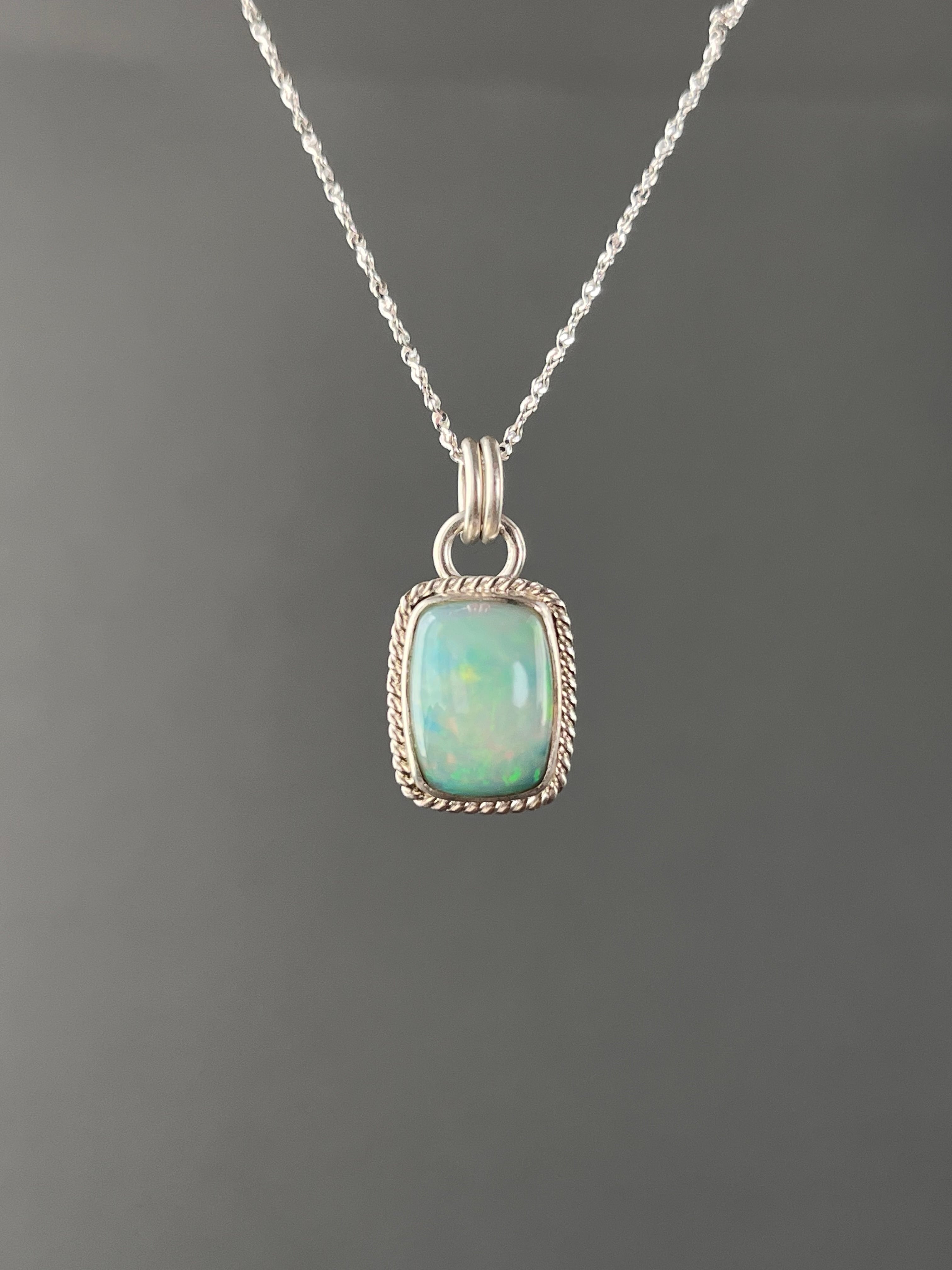 やわらかな乳白色の中に、光を受けてふわりと浮かび上がる遊色が美しいオパール。