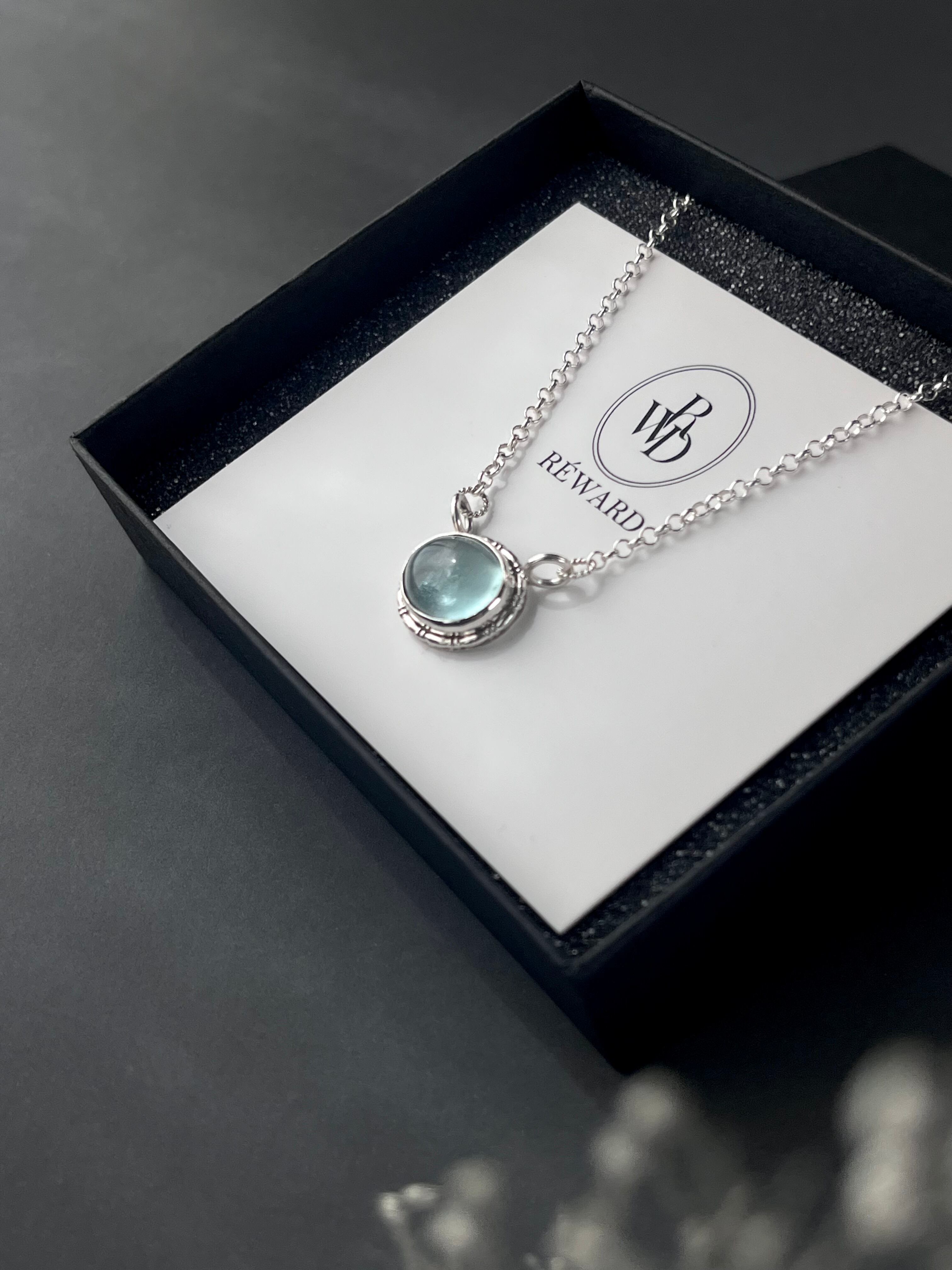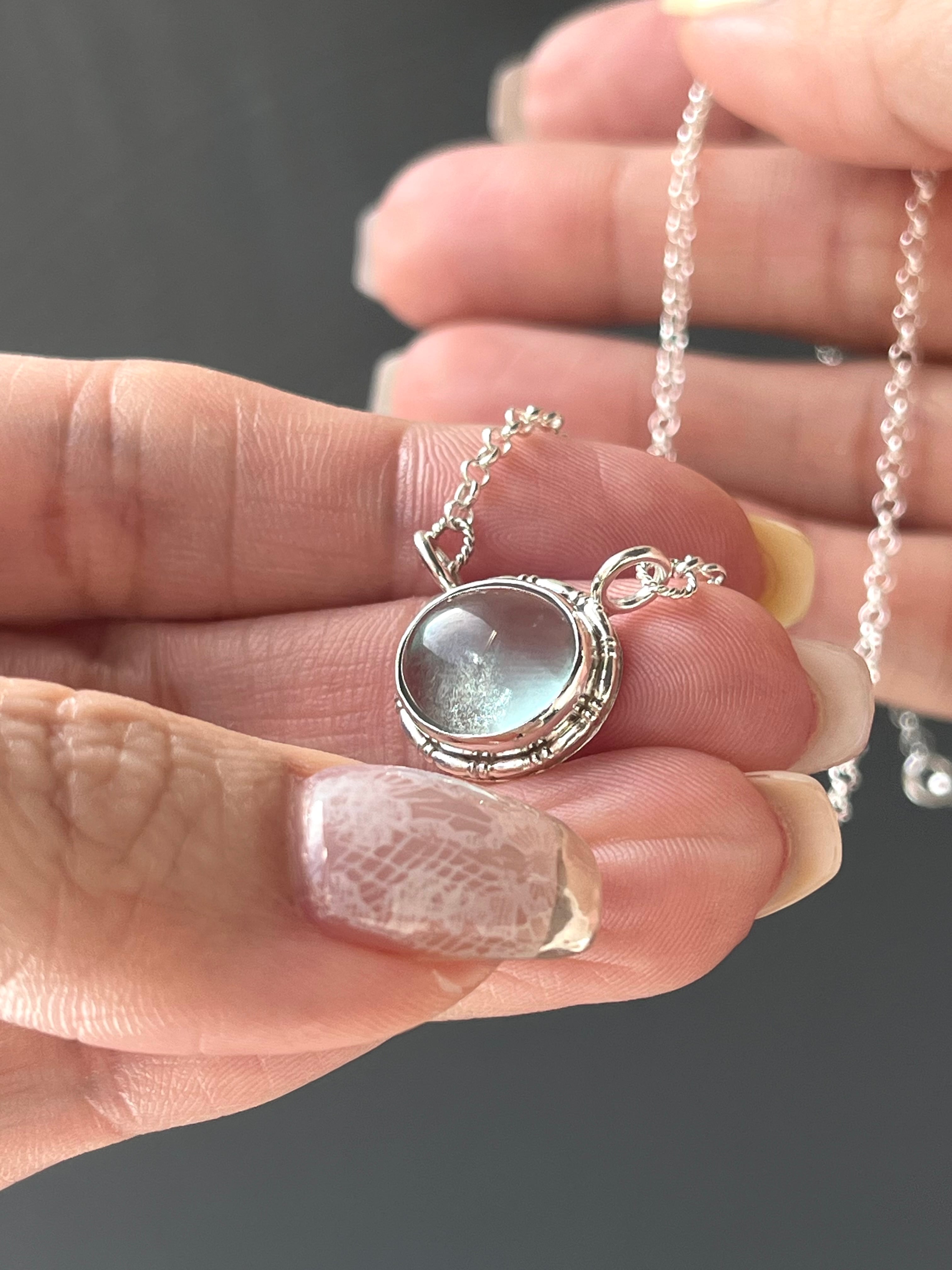 澄みきった水のような、クリアな水色が印象的なフローライト。