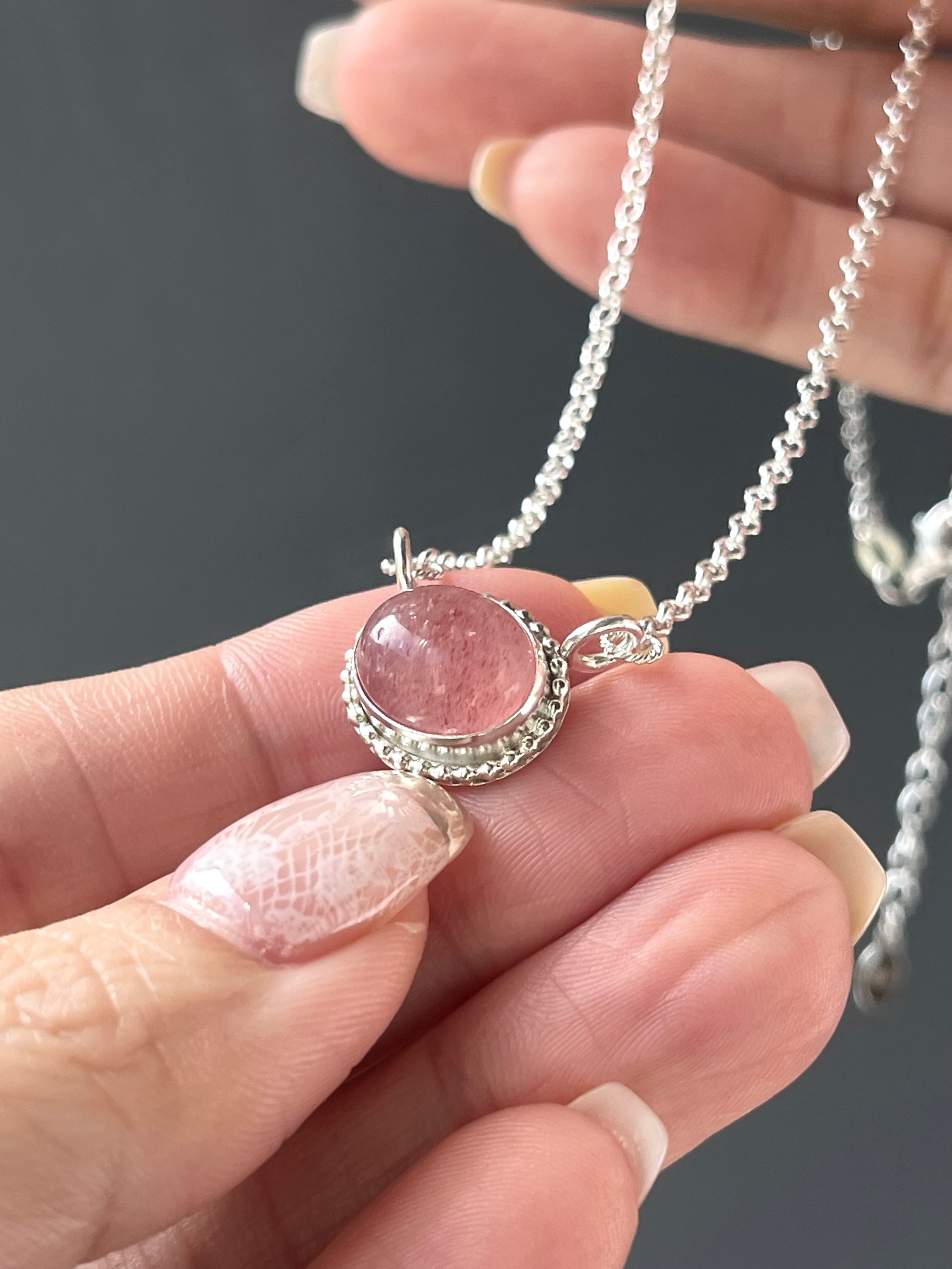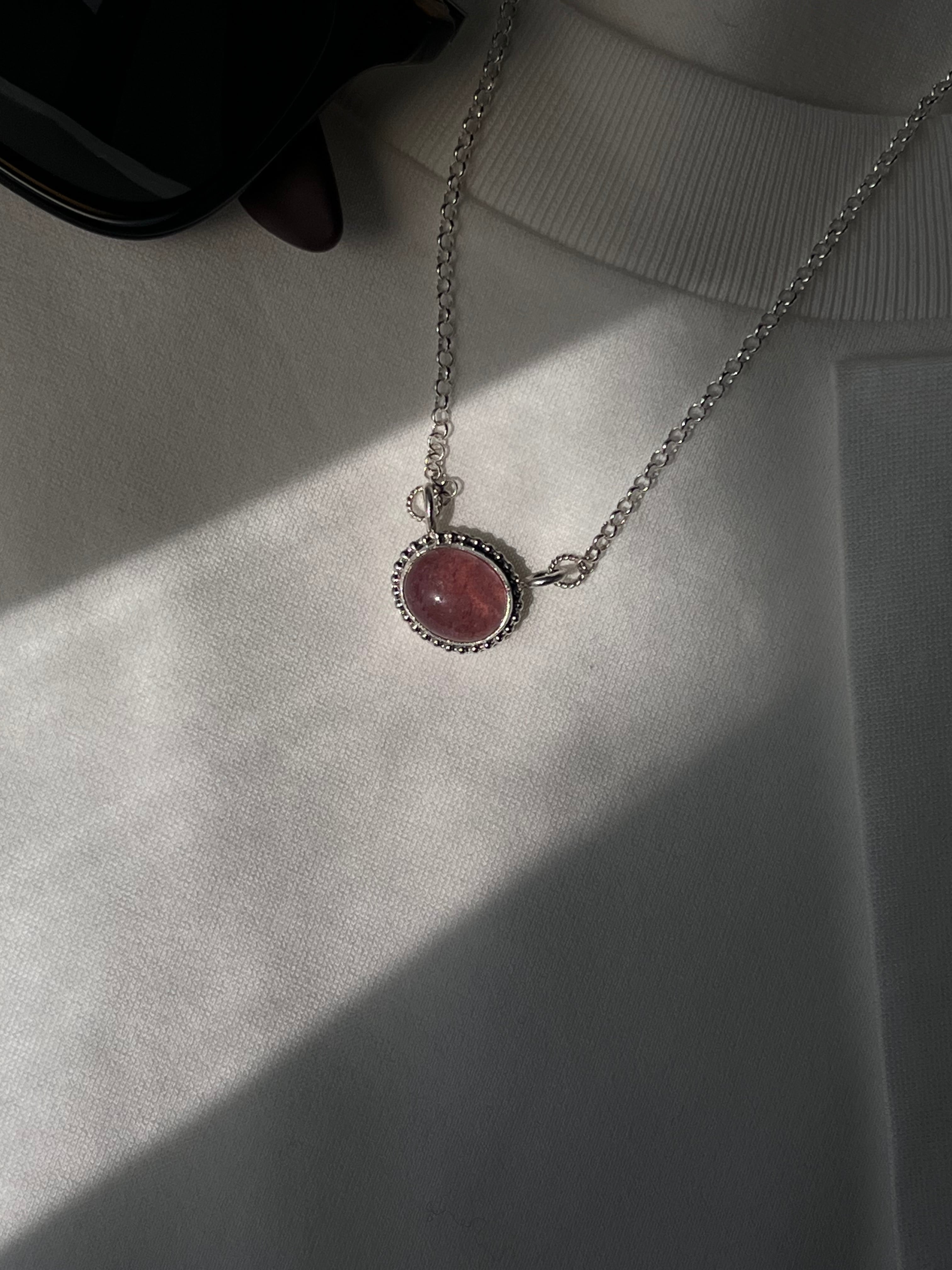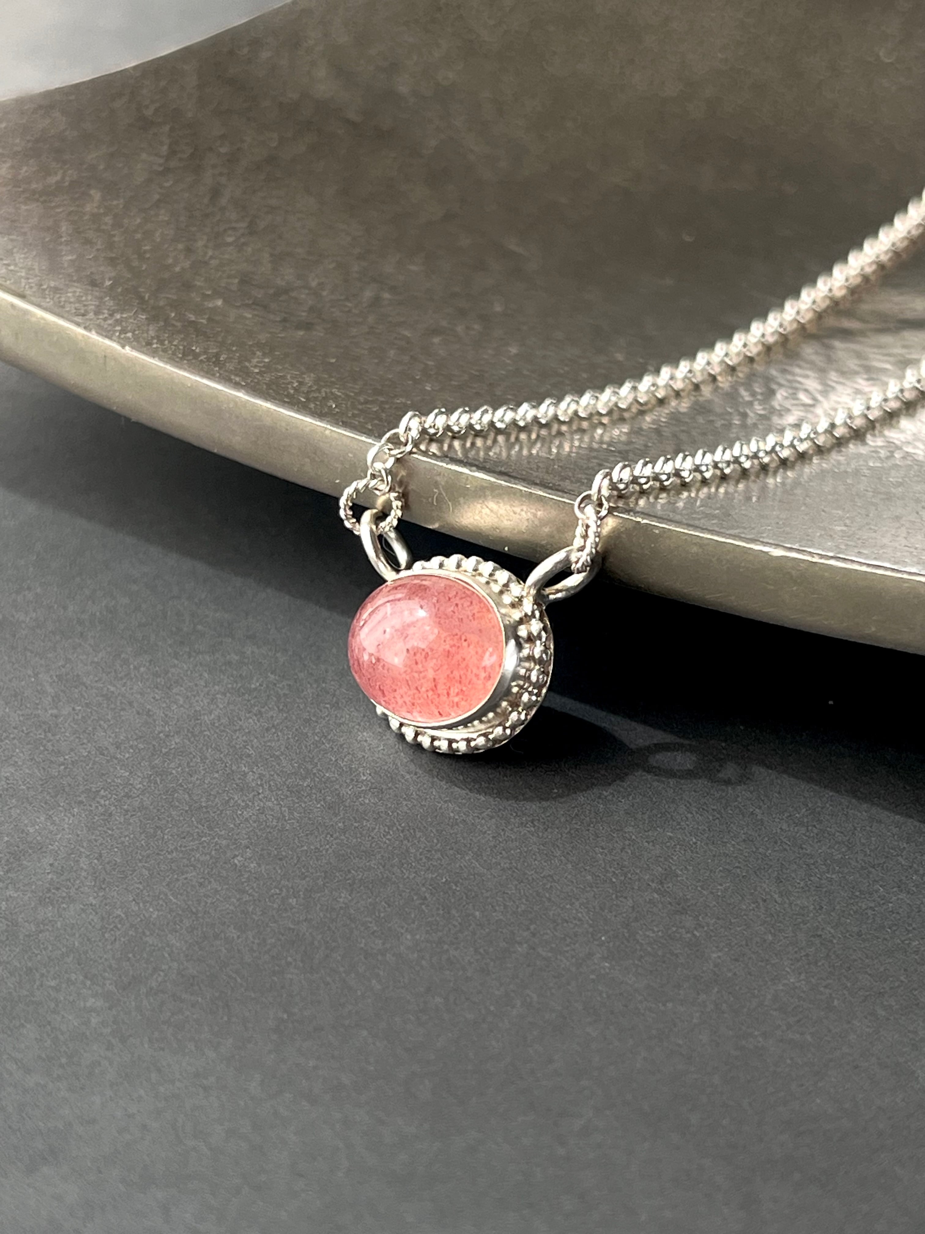 春色のストロベリードロップ/ストロベリークォーツネックレス