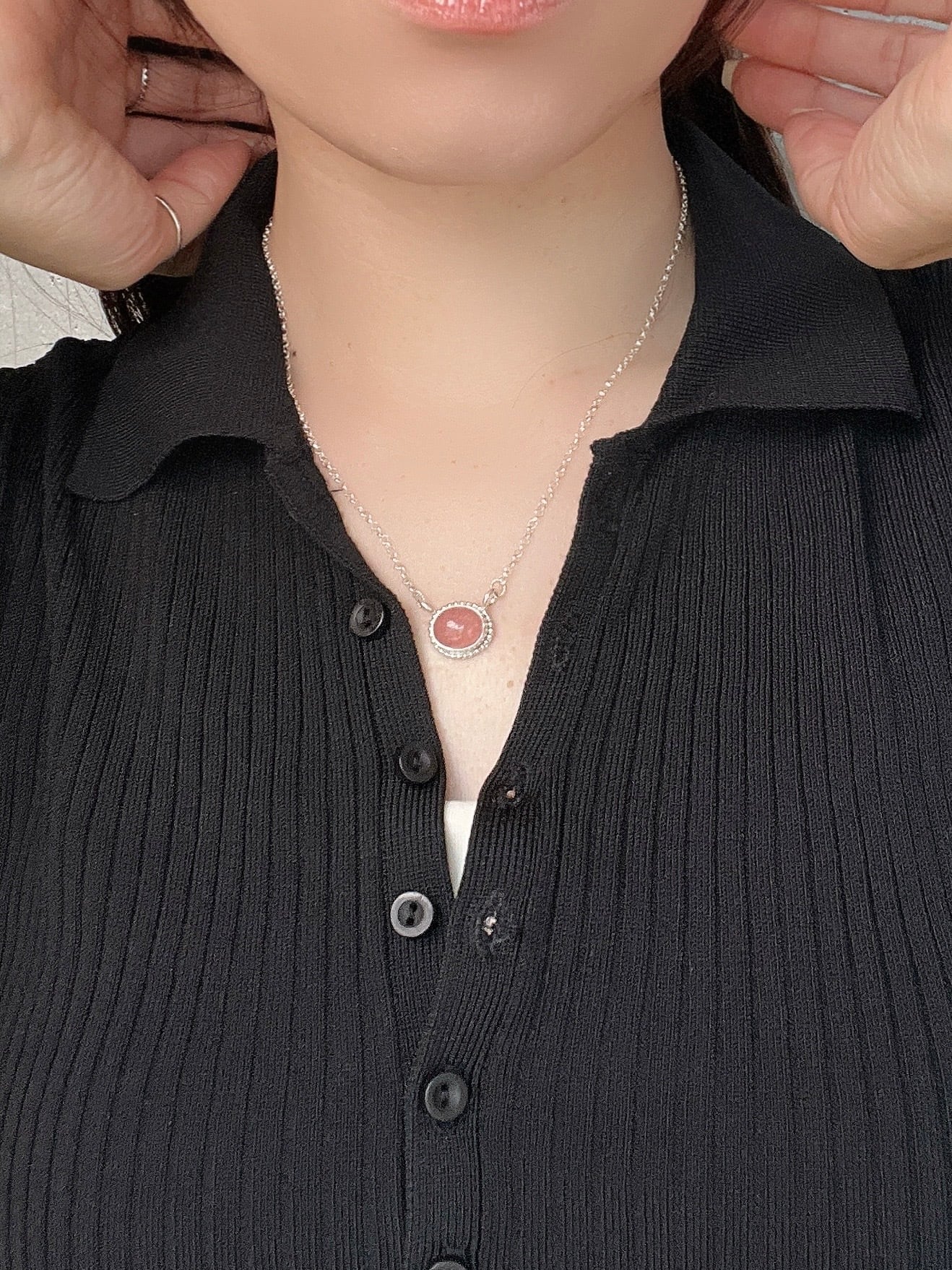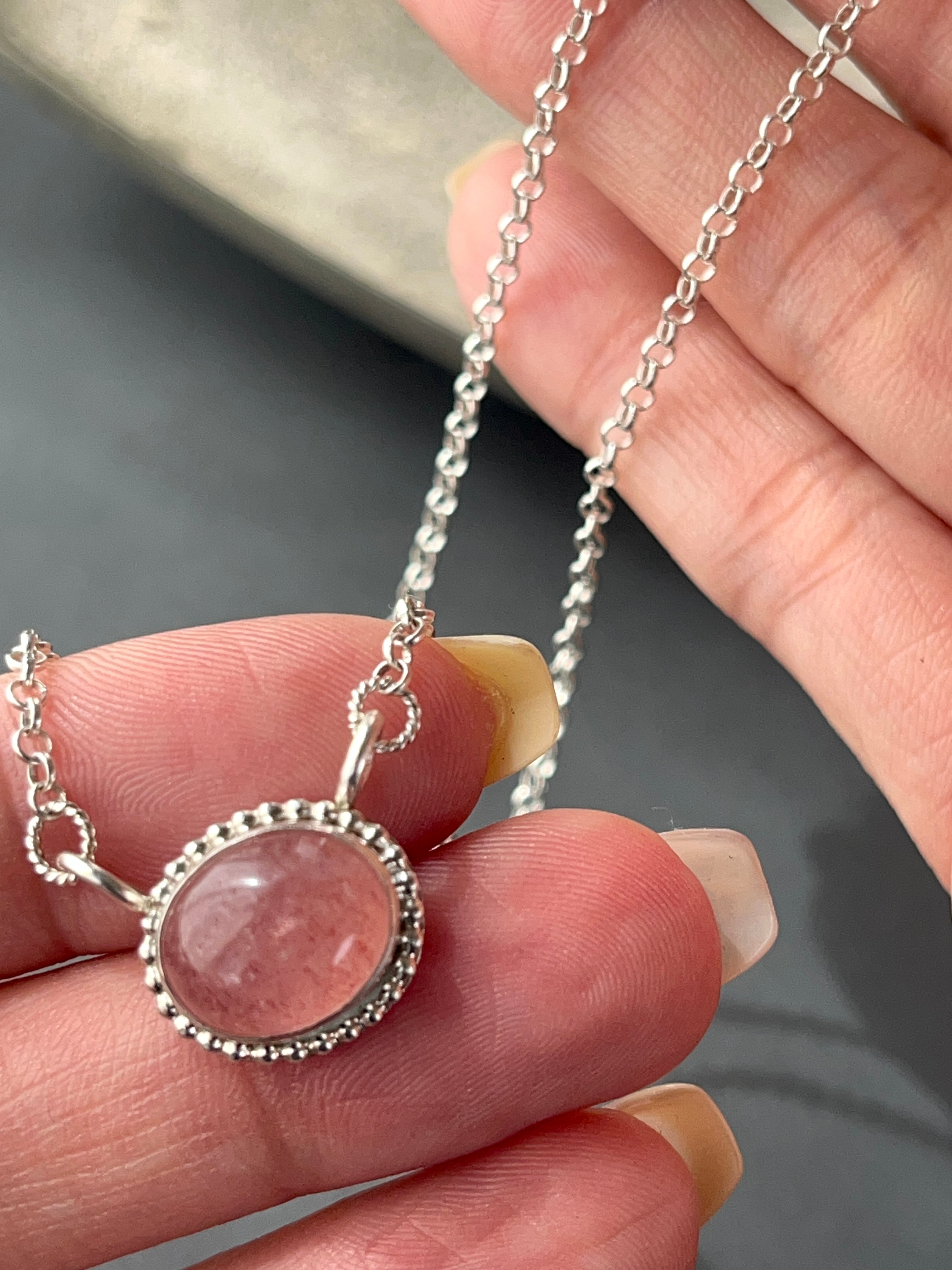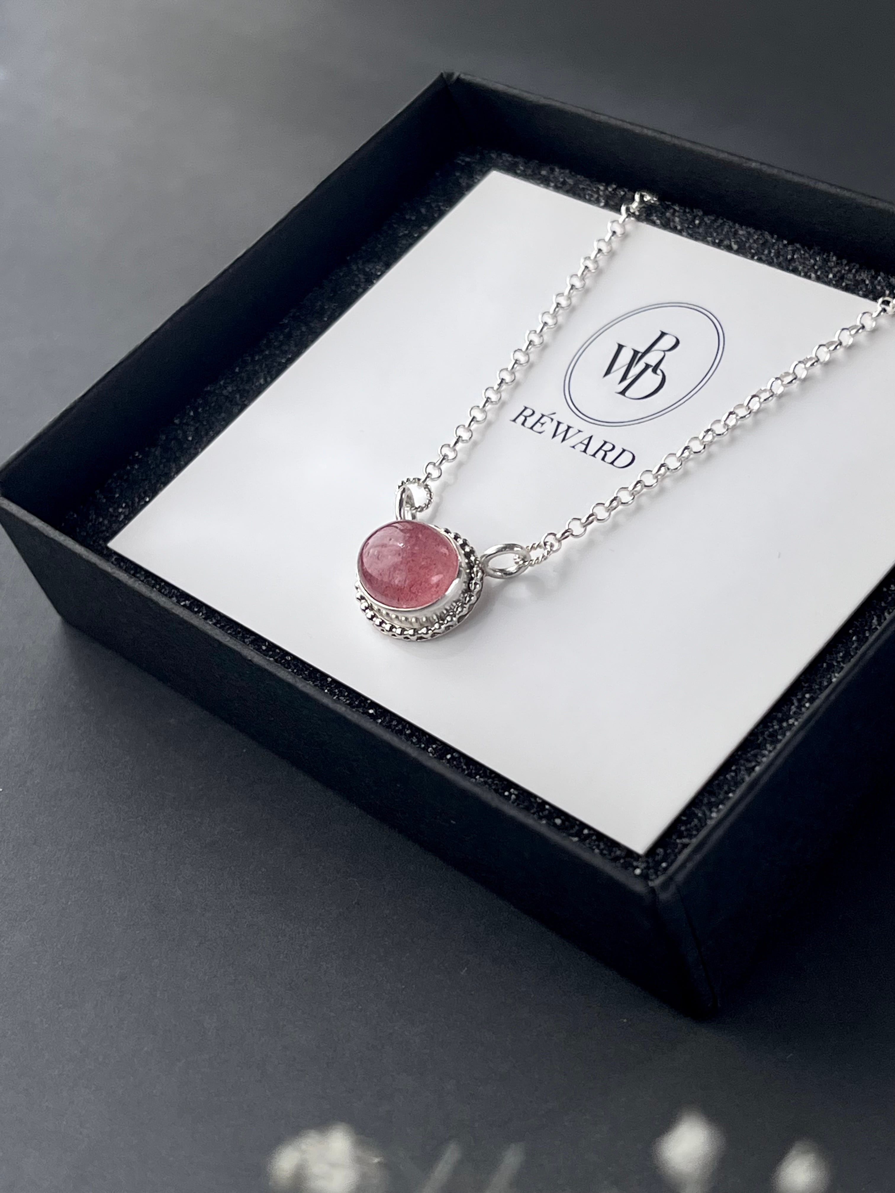 春色のストロベリードロップ/ストロベリークォーツネックレス