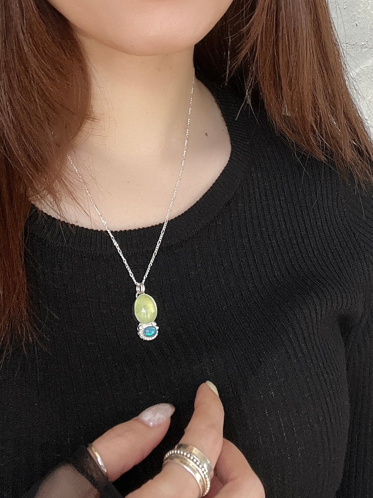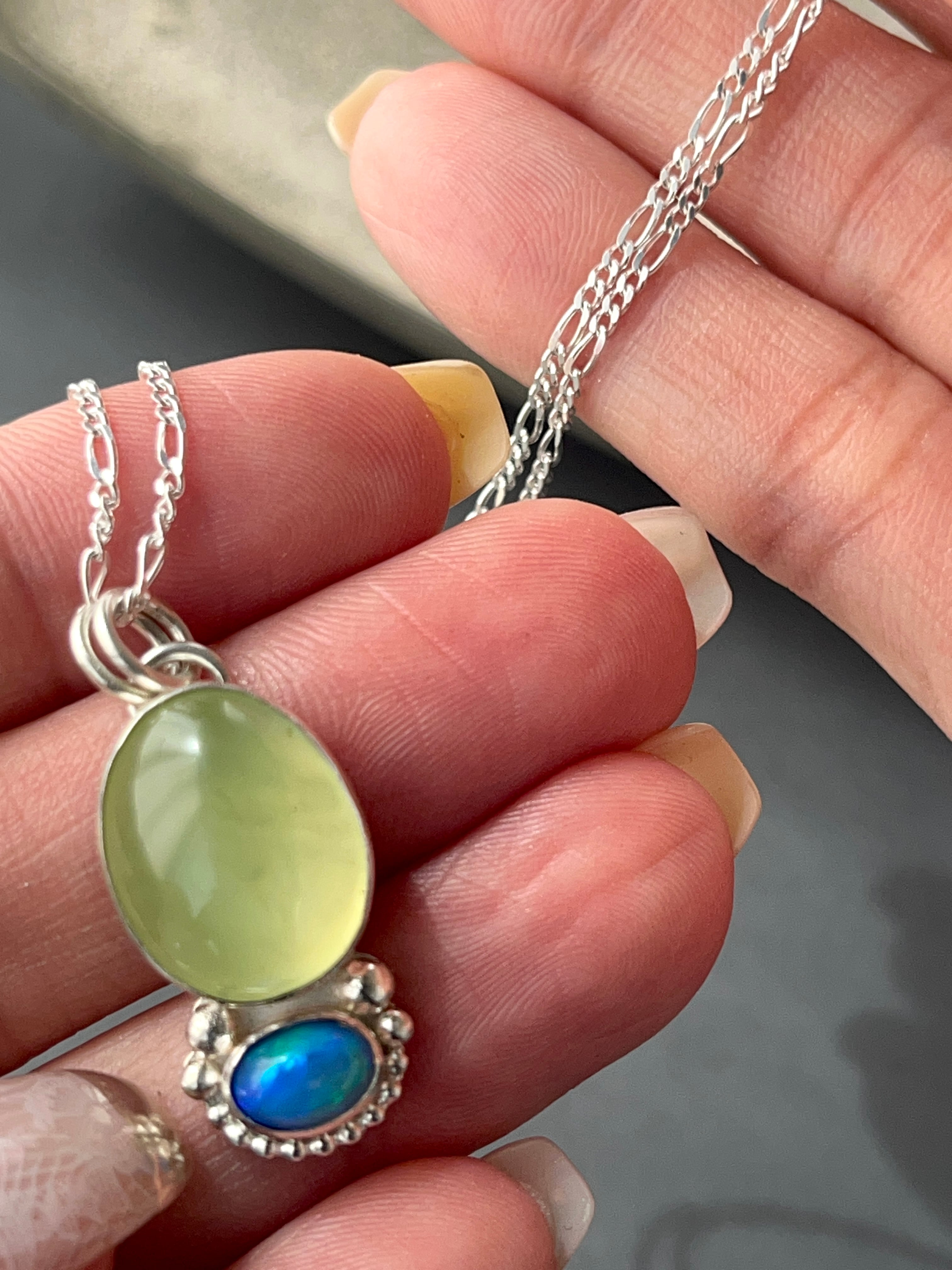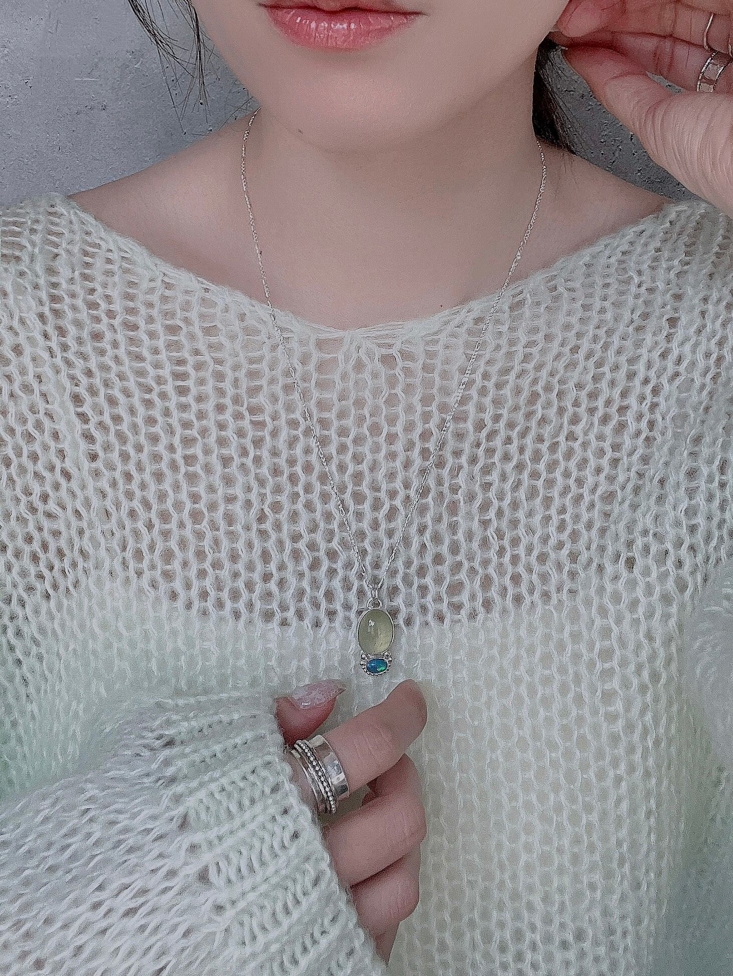 重なりのニュアンス/プレナイト×オパールネックレス