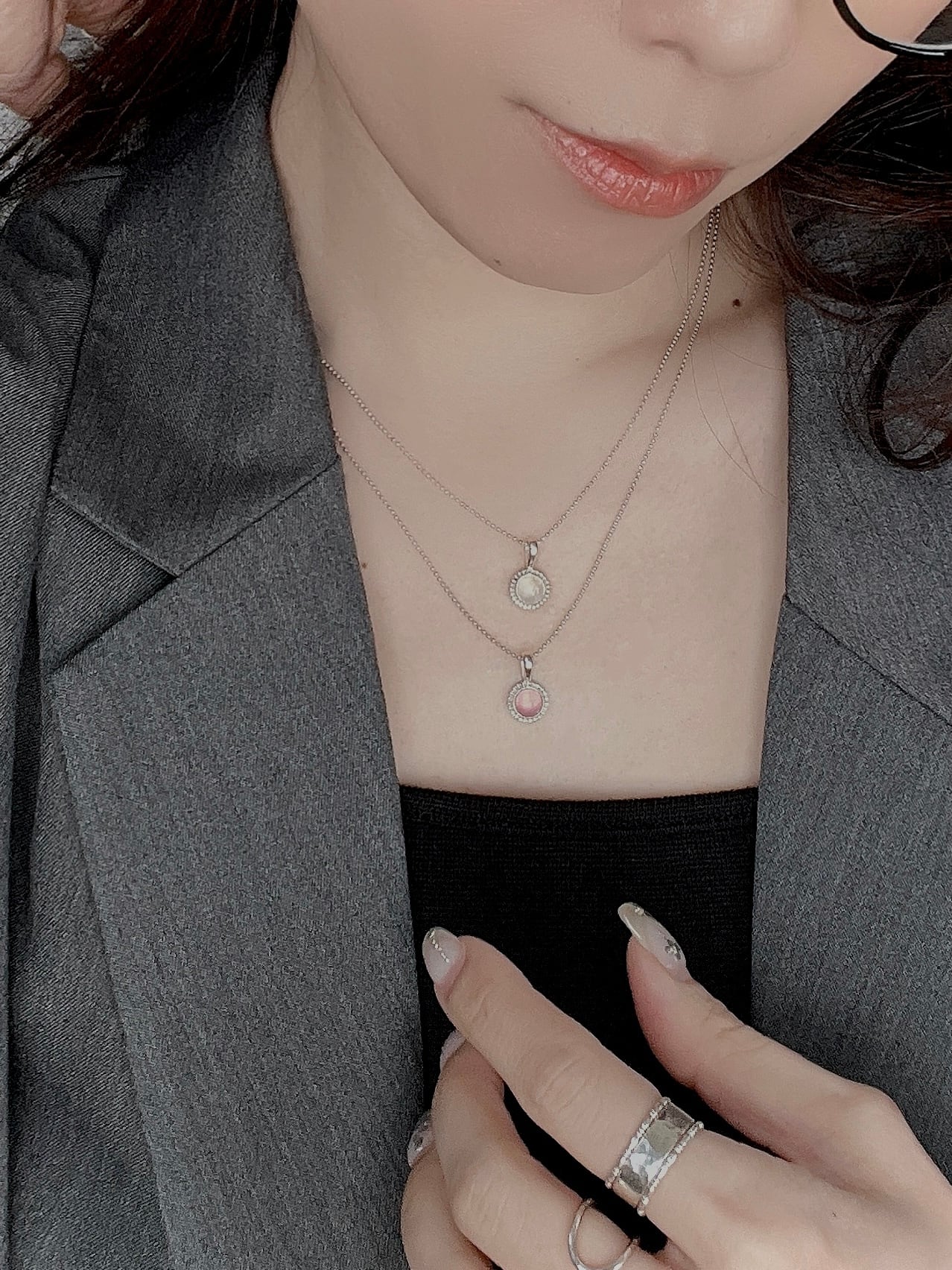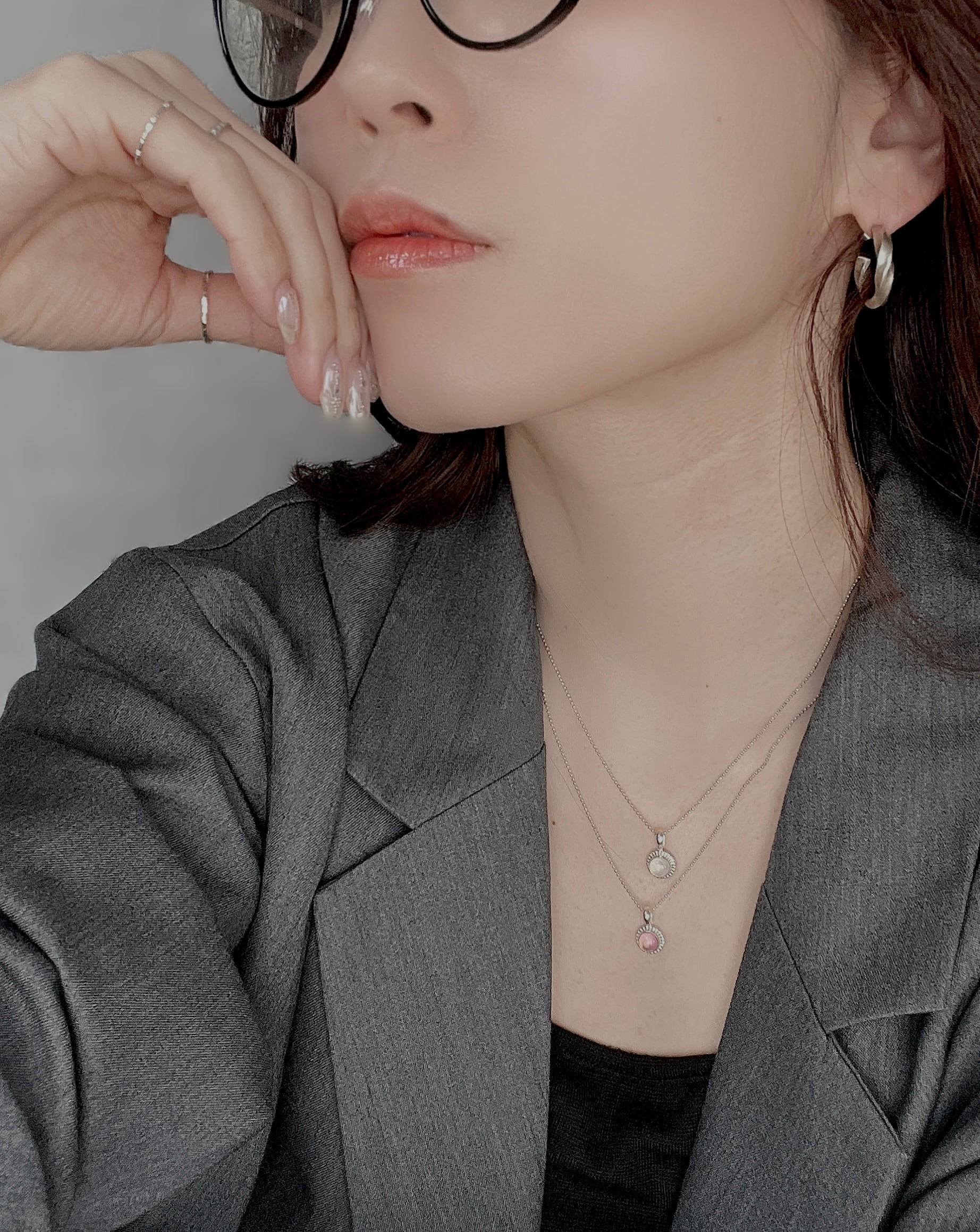 モルガナイトの淡く優しいピンクは、肌に溶け込むような柔らかさ。